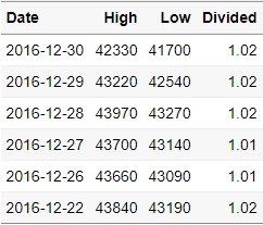 select(Date,High,Low,Divided)