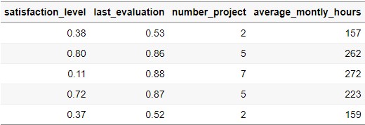$ average_montly_hours : int 157 262 272 223 159 153 247 259 224 142 ...