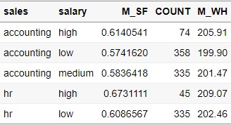 M_SF = mean(satisfaction_level), # 컬럼명 및 계산 함수 설정